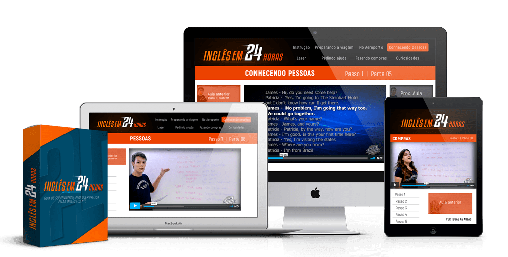 Na verdade, a partir de hoje você vai virar o jogo a seu favor com o Inglês em 24 horas. São 11 módulos bem didáticos que explicam com detalhes o que você precisa fazer para enriquecer o seu vocabulário e melhorar o seu diálogo para situações reais do dia a dia e ainda ajuda você a entender as curiosidade sobre o comportamento dos americanos para você se sentir à vontade na hora de falar inglês.
