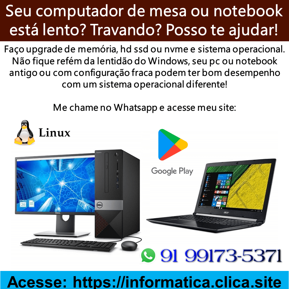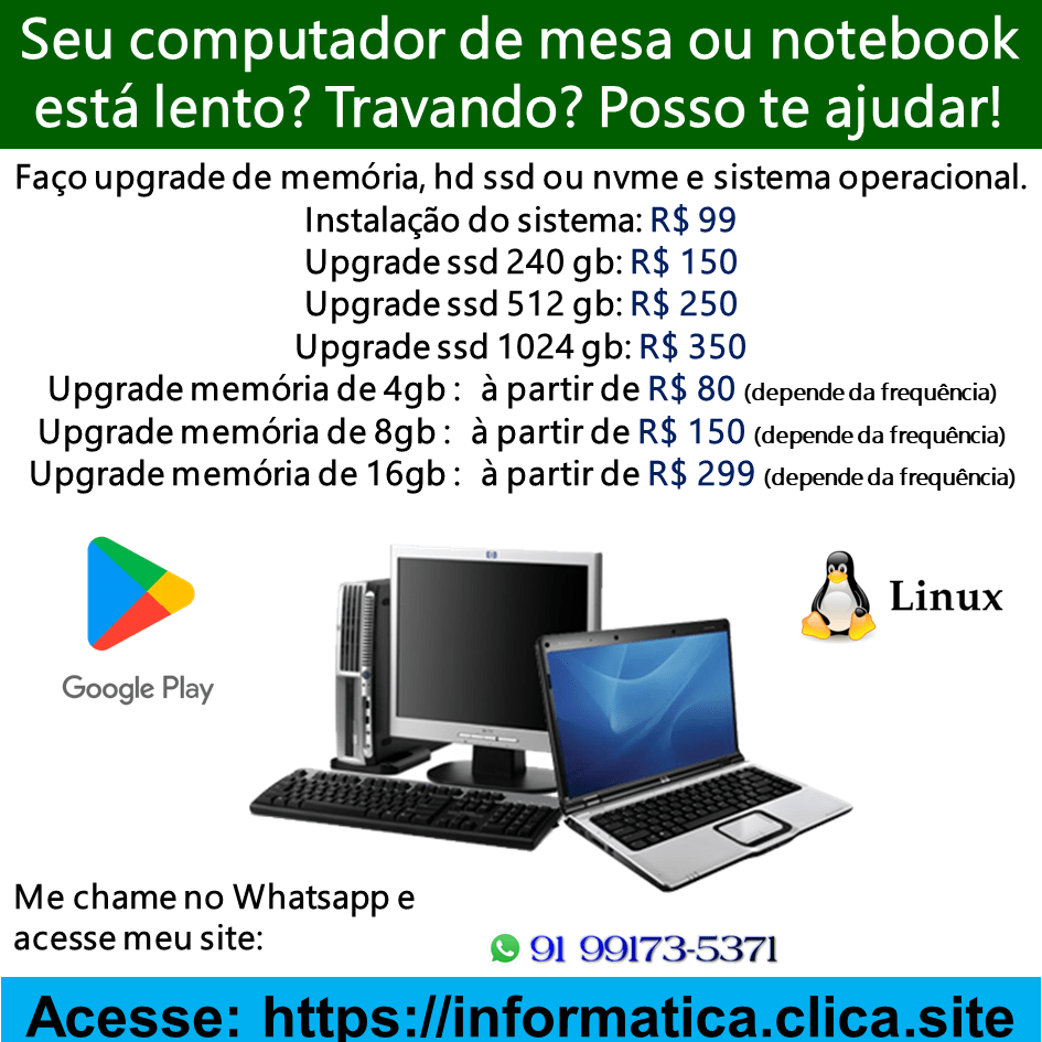 Faço upgrade de computador e notebook. Consigo deixar seu computador ou notebook mais rápido!