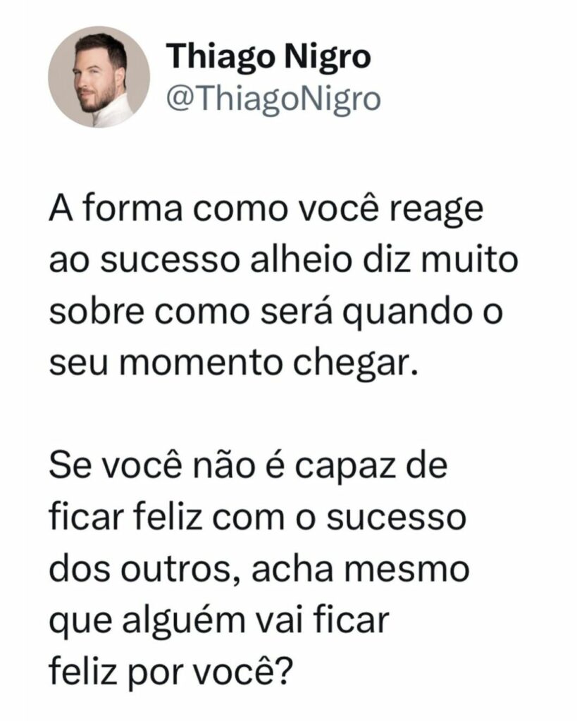 Seja humilde e faça do sucesso alheio uma inspiração. Dessa forma, você eventualmente também vai conseguir o seu próprio sucesso – basta dar tempo ao tempo.