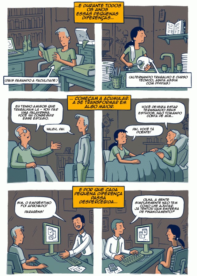 O ilustrador australiano Toby Morris criou uma história em quadrinhos que nos lembra que nem todos temos as mesmas oportunidades na vida. É uma narrativa sobre duas pessoas nascidas em famílias diferentes e sobre o papel exercido por seus familiares em seus respectivos destinos.
